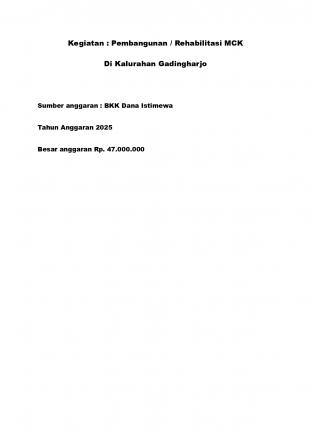 - Pembangunan / Rehabilitasi MCK Kalurahan Gadngharjo