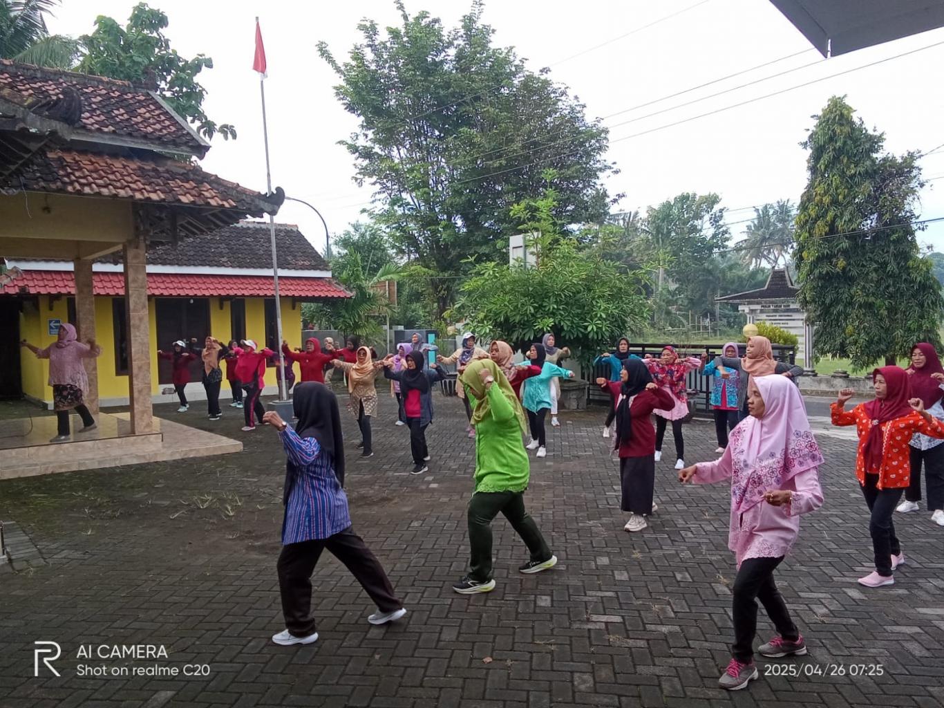 Kegiatan ini dilaksanakan di halaman balai Kalurahan dan diikuti oleh para ibu-ibu PKK, remaja putri, serta warga sekitar. Dengan mengenakan pakaian kebaya bernuansa cerah, peserta tampak antusias mengikuti gerakan senam yang dipandu oleh instruktur profesional.