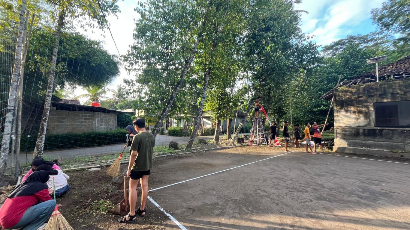 Dalam kerja bakti tersebut, warga dan mahasiswa melakukan berbagai kegiatan seperti merapikan area lapangan, membersihkan rumput liar, memperbaiki net, serta memastikan garis lapangan terlihat dengan jelas. Kerja sama antargenerasi—mulai dari bapak-bapak, pemuda, hingga mahasiswa KKN-M UNY—menjadikan suasana gotong royong terasa hangat dan penuh kebersamaan.
